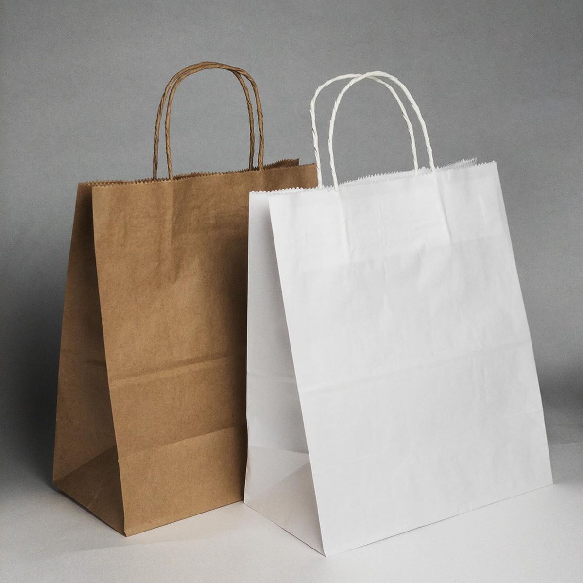Пакеты / УпаковкаВ корзинуБумажные пакеты с тонкой ручкой (белый)