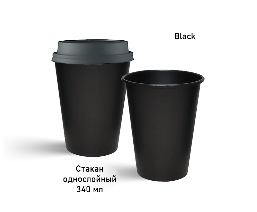 Бумажный стакан 340 мл (Чёрный-Kraft)